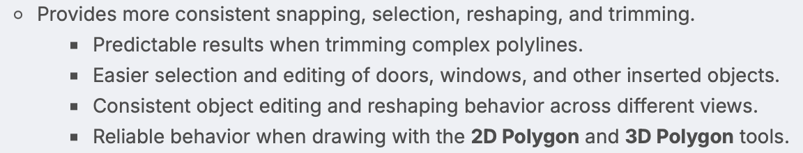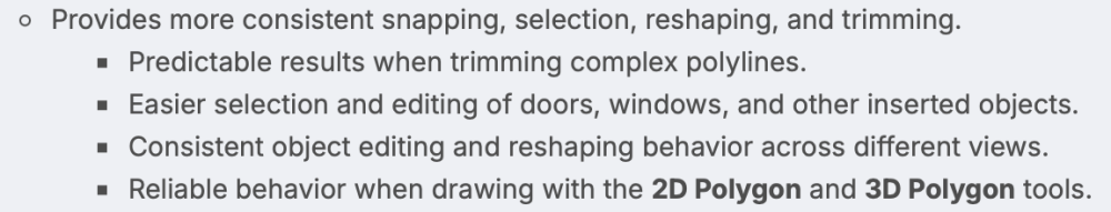 This improvement in Update 3 caught my attention. It is very specific and sounds like a rebuild of the Polygon tools. Does anyone know more? Does it carry across to the 2D Polyline tool? I use that almost exclusively since it's more flexible than the 2D polygon tool (other than the paint bucket mode, which actually makes polylines most of the time 😊). Kevin