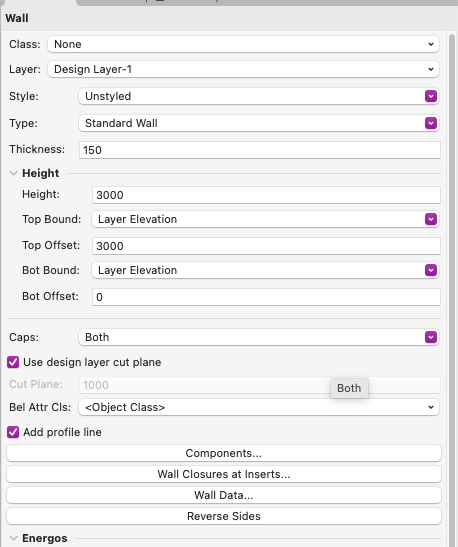 Thanks for reply I know a command for getting the cutPlane of the Design-Layer: def vs.GetLayerCutPlane(layer): return REAL The Walls in 2026 have got a new option to individually set the cut plane of a single wall. Here we can switch from design layer cut plane to cut Plane per Wall. End-Target would be to finde 0-height walls with a worksheet script. It would show, wich walls have 0 height and/or cutplane is 0. Also it would be a good option, to change cutplane from 0-height (wich is default but make no sense) to 0.5mm (middle of a 0-height wall which has always 1mm minimum height). Projects are quite big and it is hard to see what changed and it will be a lot of work to search all walls in every symbol in every annotation inside every group and layers. So it would be the target to search walls with 0-height and set cutplane to 0.5mm which would make them visible again. I think the possible workflow could be to search layer cutplane and change from 0 to 0.5mm. Unfortunately it is not clear what happens with walls inside symbols or annotations. There the script should deactivate the checkbox and then set the cutplane. Problem is just giving 0-height walls a height would not be enough, because cut-plane of zero would not generate a wall section if the wall bottom bound at zero. End Result would be a "Wall Heal Helper Worksheet" and some scripts to fix legacy symbols and wall settings.