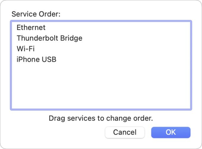 Hey, In macOS, you can set the order in System Preferences when you have multiple active connections. First in list got highest connection priority. … maybe this info can help. Greetings Tobi