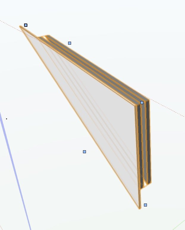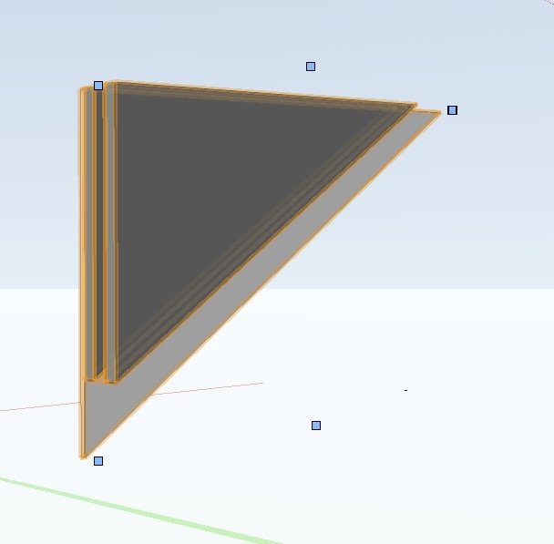 I am forever trying to work out the least worst way of dealing with these kinds of scenarios. Two possibilities: 1) Instead of making the bottom of the wall on your dotted line in the OP, and then offsetting the plasterboard component downwards from here, make the bottom of the wall the bottom of the plasterboard and offset all other components upwards from this: (there may be some reason I've not thought of why this won't work, perhaps to do with your method of joining to roof faces) 2) Draw the extra triangle of plasterboard as an extrude as previously suggested - but instead of masking the join line in annotations, tick the magic "merge with structural objects in sections" box which, despite the name, also merges the objects in elevational hidden line views. I only discovered relatively recently that this works and am never 100% sure whether it is actually supposed to work, given the name. We know that VW has a phobia of changing any terminology or tool names to something that would let users clearly understand what things are actually supposed to do, so who knows. The big downside is that it doesn't work in shaded views, as discussed here. -