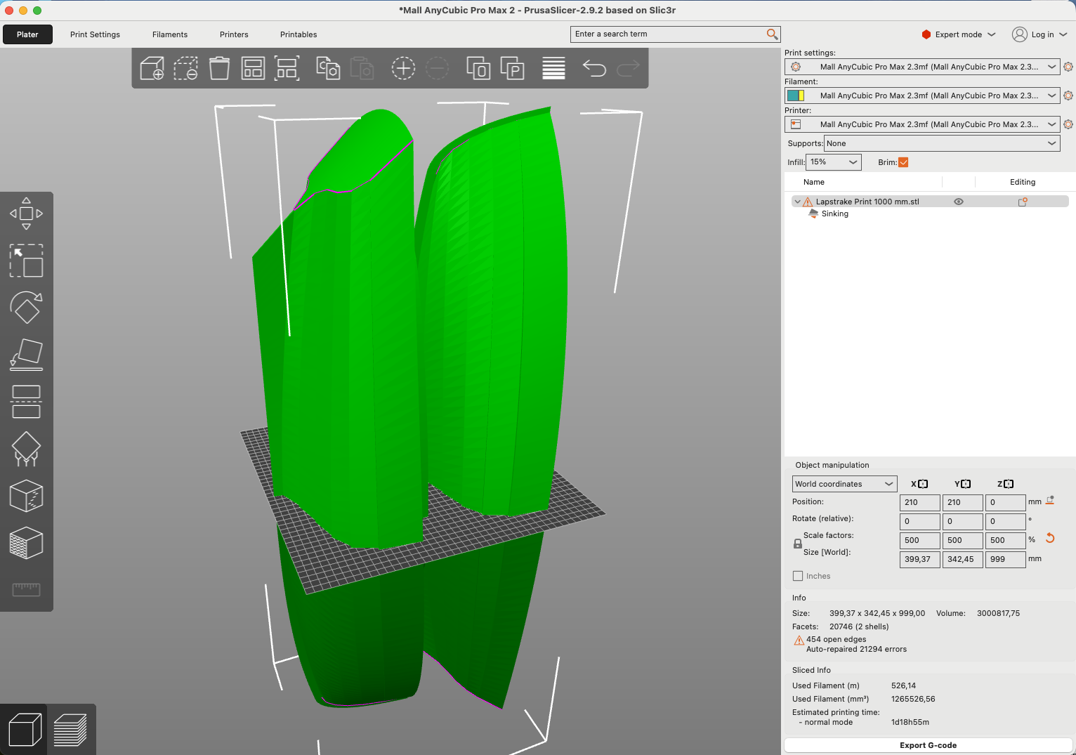 You don't need a 80x80 cm printer do print a one meter model. I can print up to a one meter model on my AnyCubic Cobra Max 2, with a print box of 42 x 42 x 50 cm, and it's significantly less expensive. What you do is that you split it in the middle. Besides having to glue it together, you get a cleaner print, and you generate a footprint for the model to stand on, with two flat can corresponding surfaces. I typically add a "frame" shape to add more surface area to the glue and to make it stick better to the bed. I also print just a shell, which can be say 1 to 1.5 mm thick, which means that it prints faster. For boat with normal proportions, you can easily print both ends at the same time. Having three sections could expand the model Lise to 1.5 meters and so on. It just takes longer to print. The one meter model would take 43 hours to print according to the slicer app.
