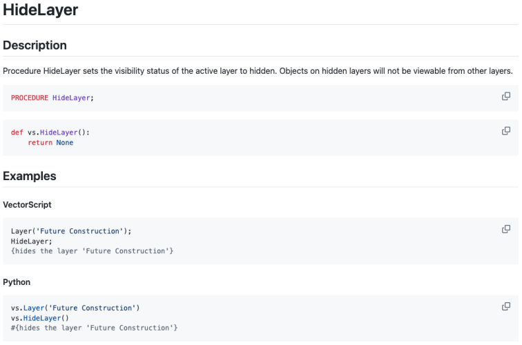 For layer visibility there are HideLayer ShowLayer GrayLayer