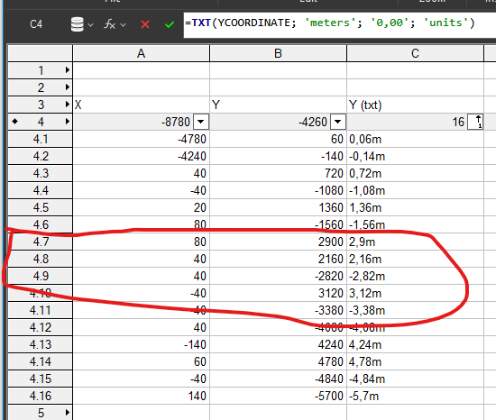 Hello I'm having little challenge with Worksheet Function TXT (https://github.com/Vectorworks/developer-worksheets/blob/main/Worksheet Functions/Vectorworks 2026 US.md#txtvalue-tounit-param1-param2-) and sorting. I'm using TXT to convert coordinate values to meters, rounding them at the same time and adding units at the end to get consistent values no matter what document units are. How ever this messes sorting (ascending) so it starts from zero and sorts to higher value disregarding negative mark. What I would like to happen is sorting to start from most negative ending at maximum positive value same way as numbers do. I get that this might to be because this is now text not number. I also get some unusual sorting, to me it seems that 2,9m is bigger than 2,16 and -2,82, so it should be between -2,82m and 3,12m. Is there way to get sorting from most negative to most positive with defined unit somehow. Sample file attached. PS. I know "divide coordinate by 1000, roundup to two decimals and add m trailer from number format" thing exists. That is affected by document units... WS TXT Function sorting.vwx