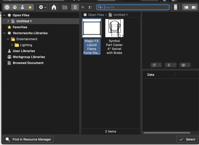 Hello, I’m using the Lighting Device Tool to add some Special Effects devices and assign their patch and position. In Vectorworks 2026, when I try to search by name inside the Lighting Device Tool, no Special Effects devices appearin the results. However, if I search in the Resource Manager, all the devices are there: Entertainment → Special Effects → Library Brands I tested in Vectorworks 2025, and the workflow works normally. In 2025, adding a Special Effects device is exactly the same as adding any other Lighting Device, and it appears correctly in the search. This is what Im seeing on VW2025: Lasers, Lighting, SFX This is what Im seeing on VW2026: Just Lighting So I’m not sure if this is: -a bug in VW2026, or -a new workflow where Special Effects and Lasers are handled differently. Can someone confirm how this is supposed to work in 2026?