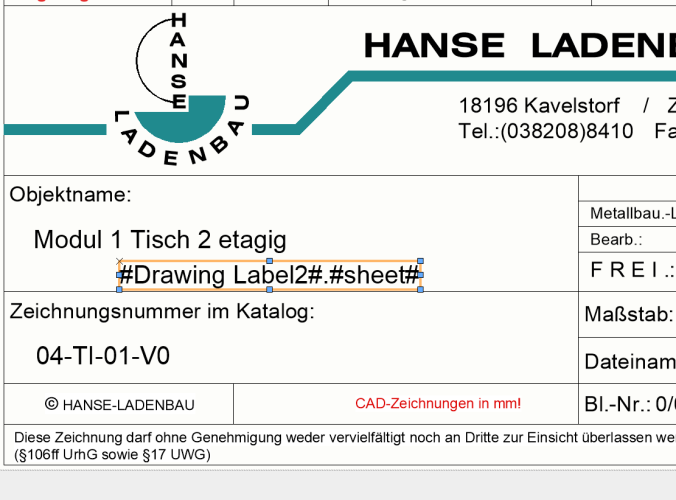 i want to have a text, in the block title, which contains the name of the layout i tried this with the hseetnumber, but its not working #Drawing Label2#.#Sheet# can someone help me, having the name of the layout written down here automatically?