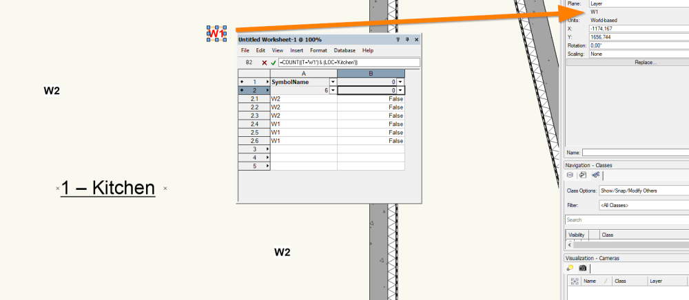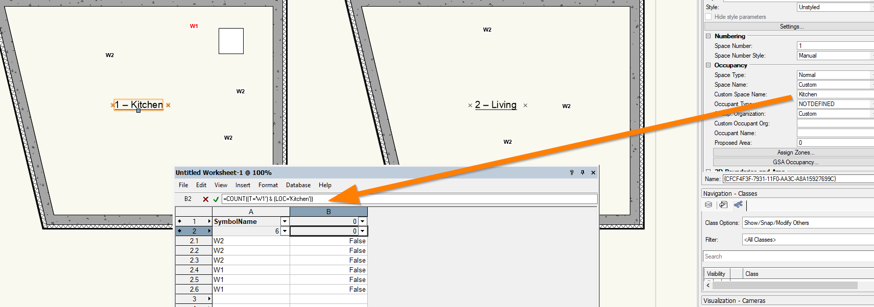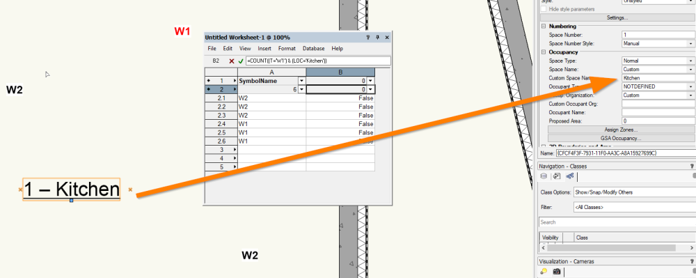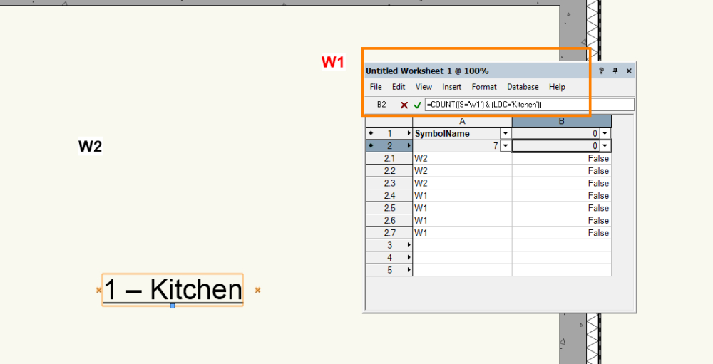 See here all the names of the objects I used i.e. SpaceObject, symbol and a printscreen of the record and the formular =COUNT((S='W1') & (LOC='Kitchen')) Can Anyone help me out please?