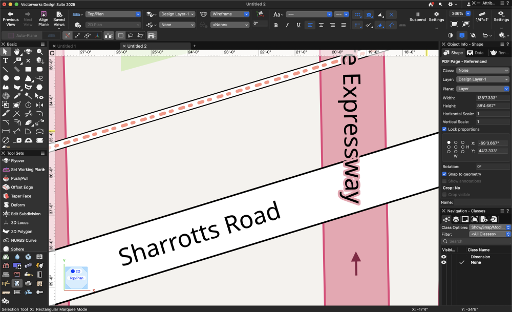 @Maurits Verbunt I got curious and copied and pasted in the coordinates into OpenStreetMap and this is what came up. I believe it's the same as yours only this one is rotated 90° to the right in comparison to what you posted In other words, north on your map is pointing to the left. So there was no text overlay. But I tried bringing the PDF directly from OpenStreetMap into Vectorworks, and it came in as a bitmap. So then I opened up the PDF from OpenStreetMap into Affinity Designer and saved it as a PDF, and then bought that PDF into Vectorworks It came in as a vector. I have not scaled it. You will have to do that. VW Map.vwx
