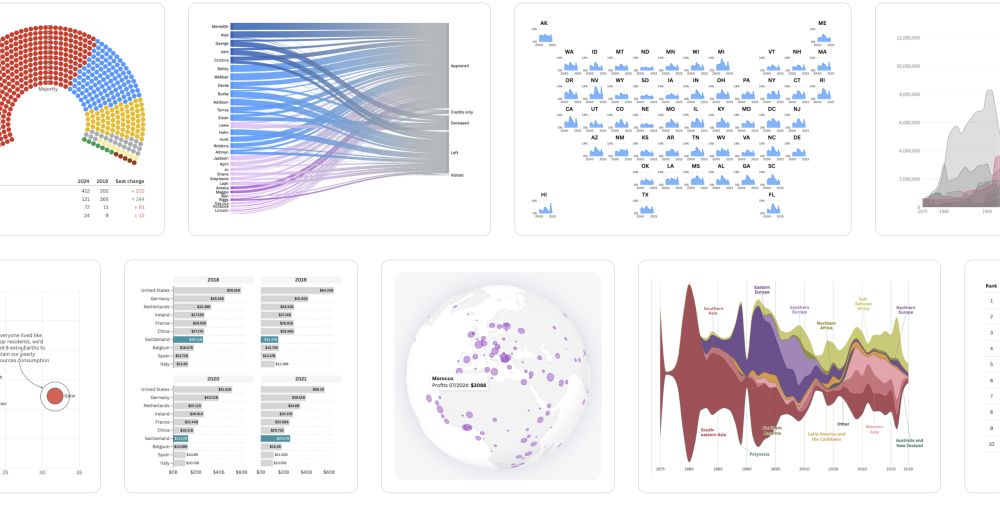 How about Infographics for different styles to use in Vectorworks. Here is 8 years old VW teaser. Also Check this website https://flourish.studio , please scroll down to see all kind of charts.