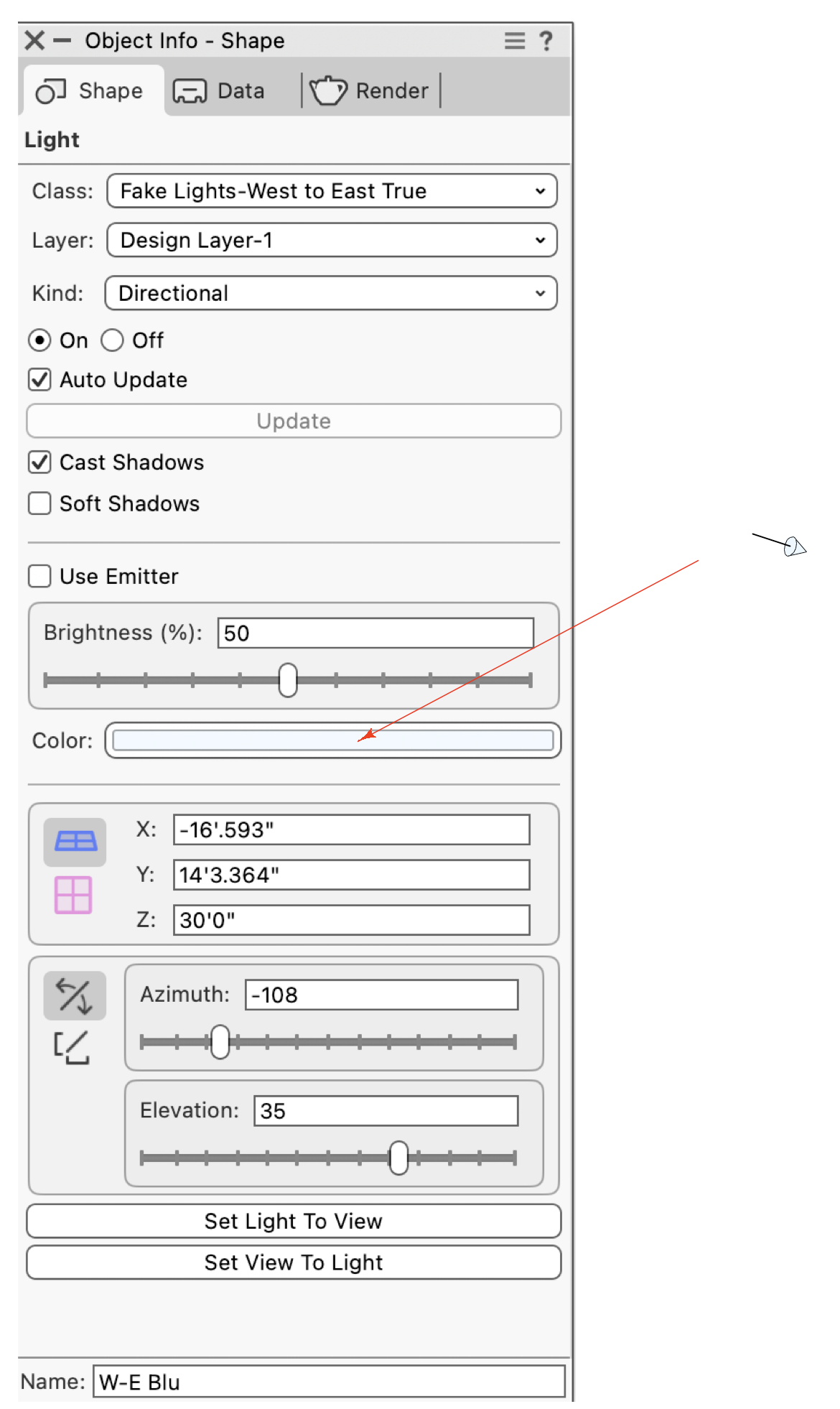 Thank you Michael, You shared with me 8 Fake lights, in the same Layer but each with different classes. I use them In some Viewports and often I need to change the color of Directional lights to get better coloring results. I can do it manually for each of 8 lights, but thinking to check what color was alreardy assigned and be able to change it with script, WS or Marionette. -