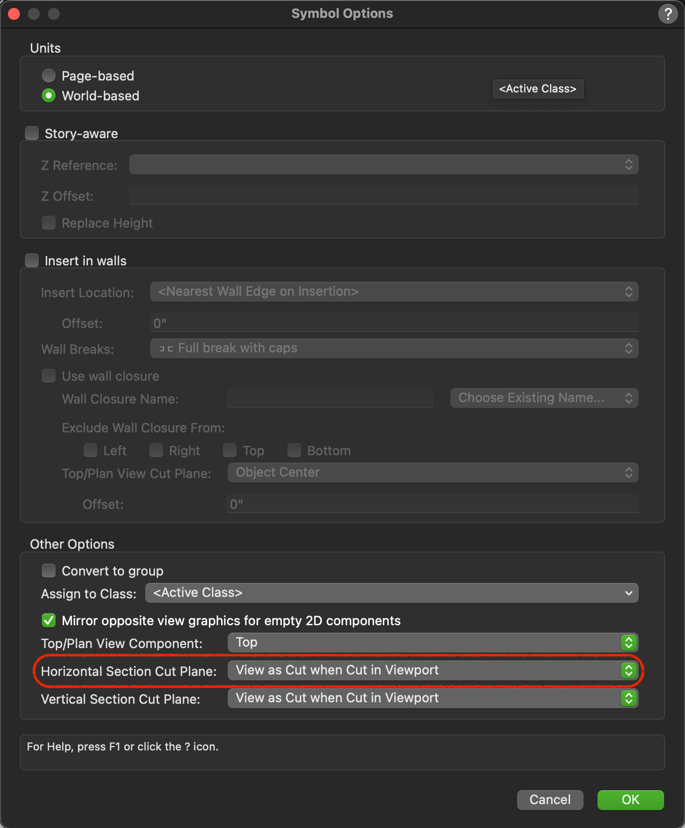 I have a bunch of symbols I've created for a show - various panels and hanging fixtures. They have 2D and 3D components to them. I would like the 2D version of the symbol to show up in a horizontal section viewport when I create a ground plan. Is this possible? I have selected "Display 2D components" in the create viewport dialogue. I thought this was supposed to make this happen, but I am still getting the cut-through version of the 3D component in my ground plan.