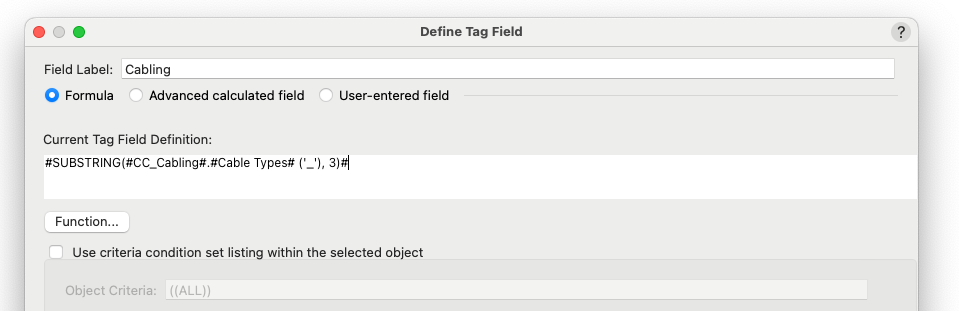 Tom W. Posted November 13, 2025 Share Posted November 13, 2025 Try this: =SUBSTRING('CC_Cabling'.'Cable Types', '_', 3) 2 Quote Link to comment