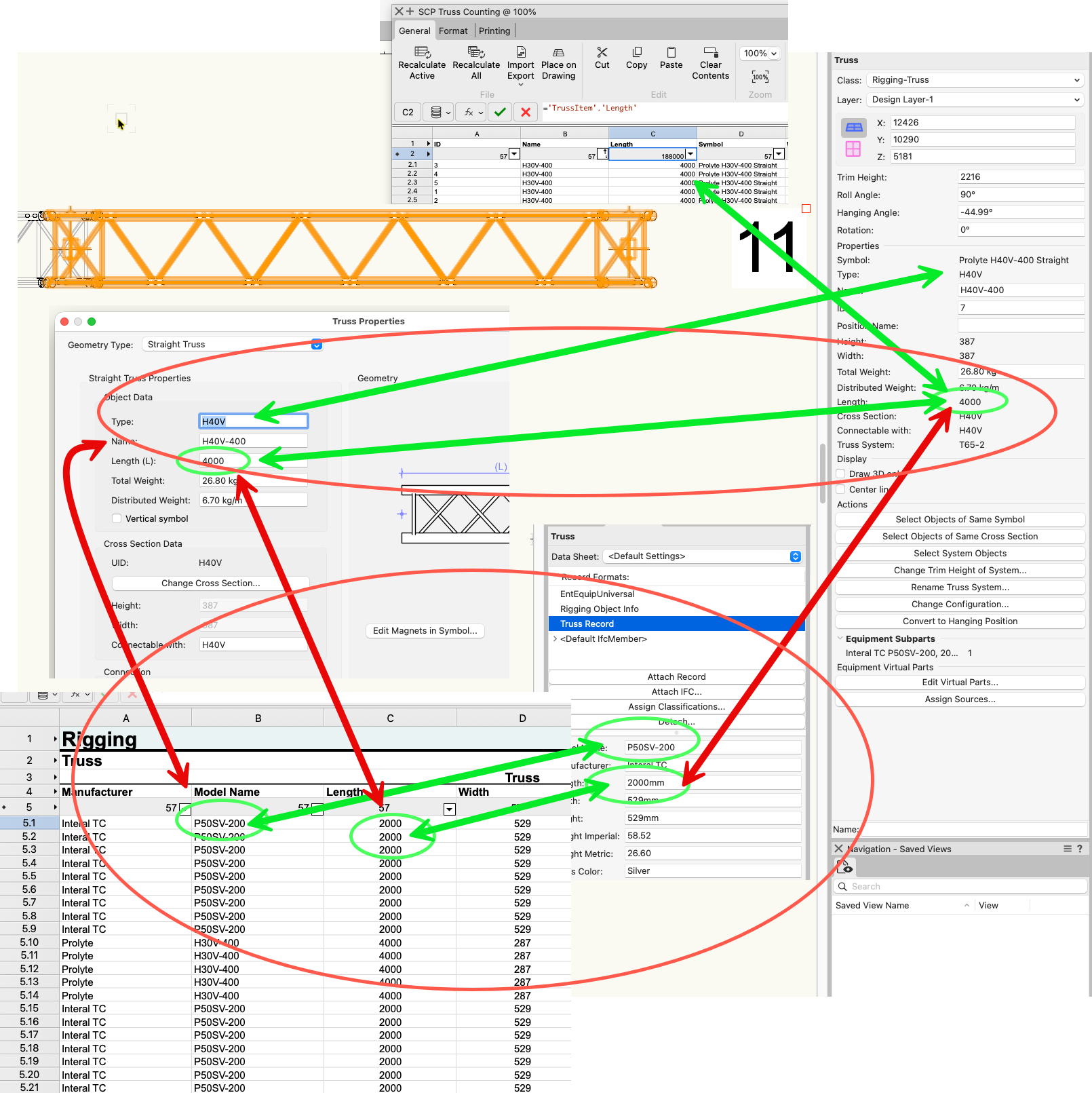 Vectorworks, Inc Employee Scott C. Parker Posted March 4 Vectorworks, Inc Employee Share Posted March 4 The reports are correct. The sources are the issue. What is happening is that reports are reading information from two different places, and the truss symbol object information does not match. You have made changes to one or both. 1. The Truss Symbol record shown here says the truss is 2000mm long 2. The Truss Properties dialog says the truss is 4000mm long. Both sets of information need to match to get the correct results in both cases. Quote Link to comment