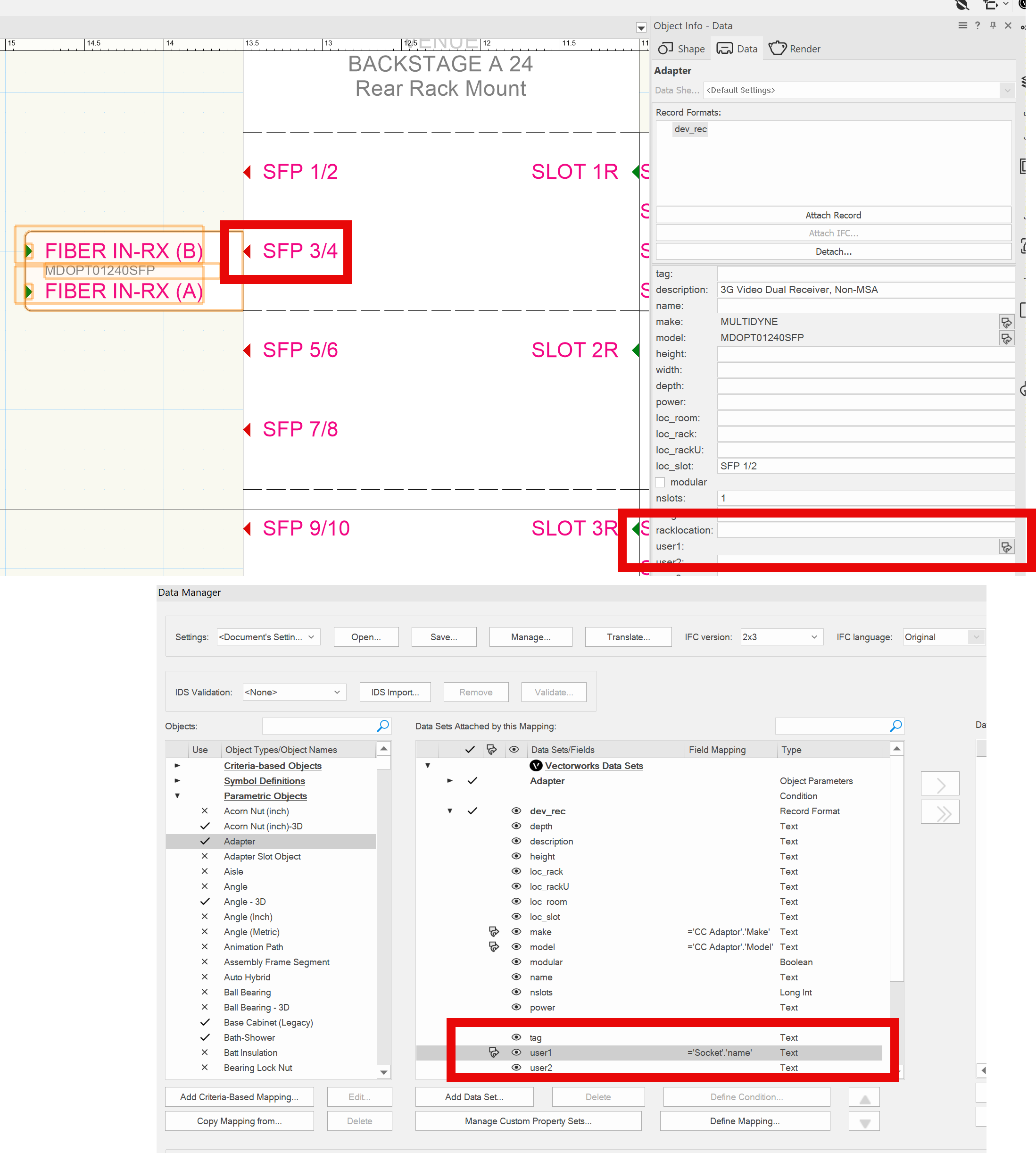 Vectorworks, Inc Employee Nikolay Zhelyazkov Posted yesterday at 07:45 AM Vectorworks, Inc Employee Share Posted yesterday at 07:45 AM Hello @Greg Abel, You can use the worksheet function =OBJECTDATA('eval adapter plug socket', 'Socket', 'name') This will give you the socket name but you can also use it for any record attached to the socket object too. Best Regards, Nikolay Zhelyazkov 1 Quote Link to comment